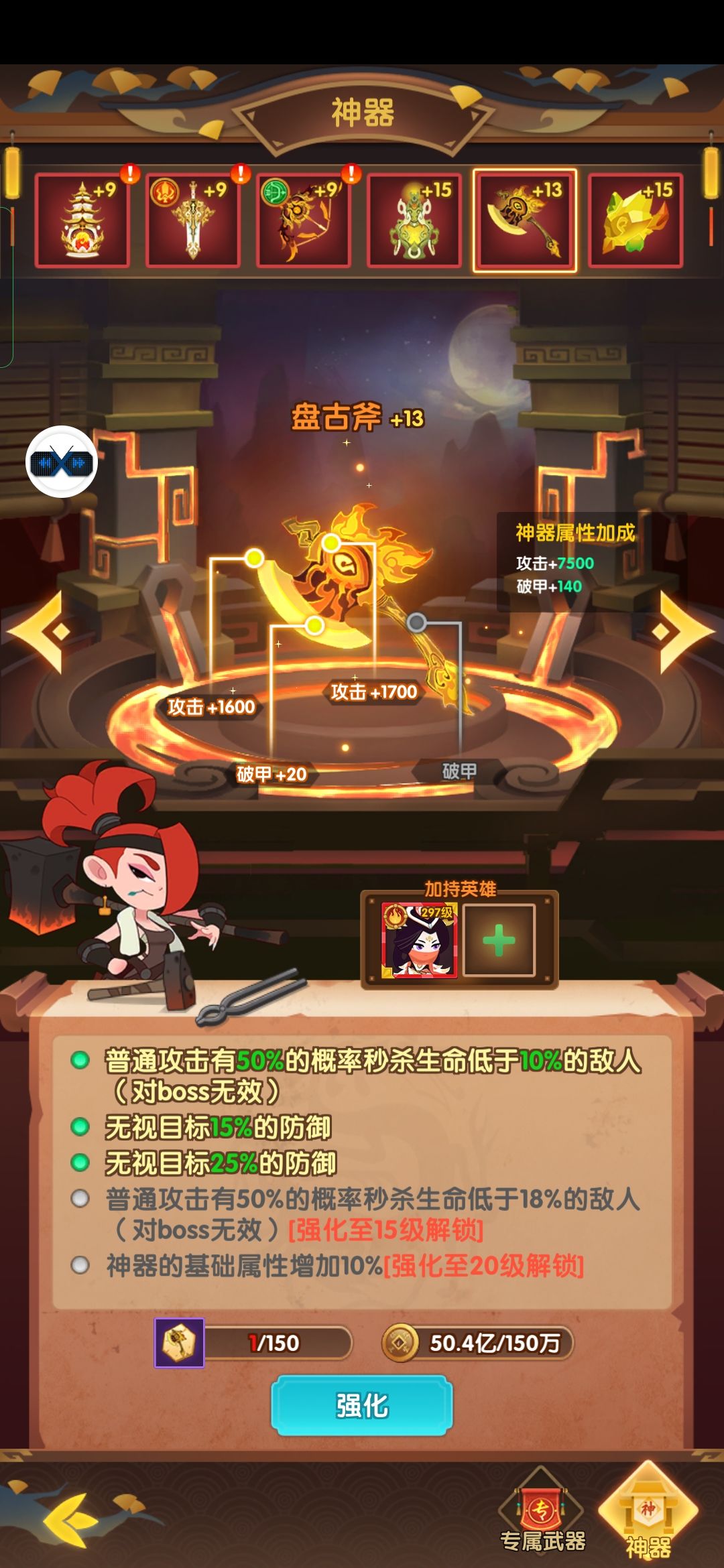升级材料:玄铁,万能碎片,法宝碎片