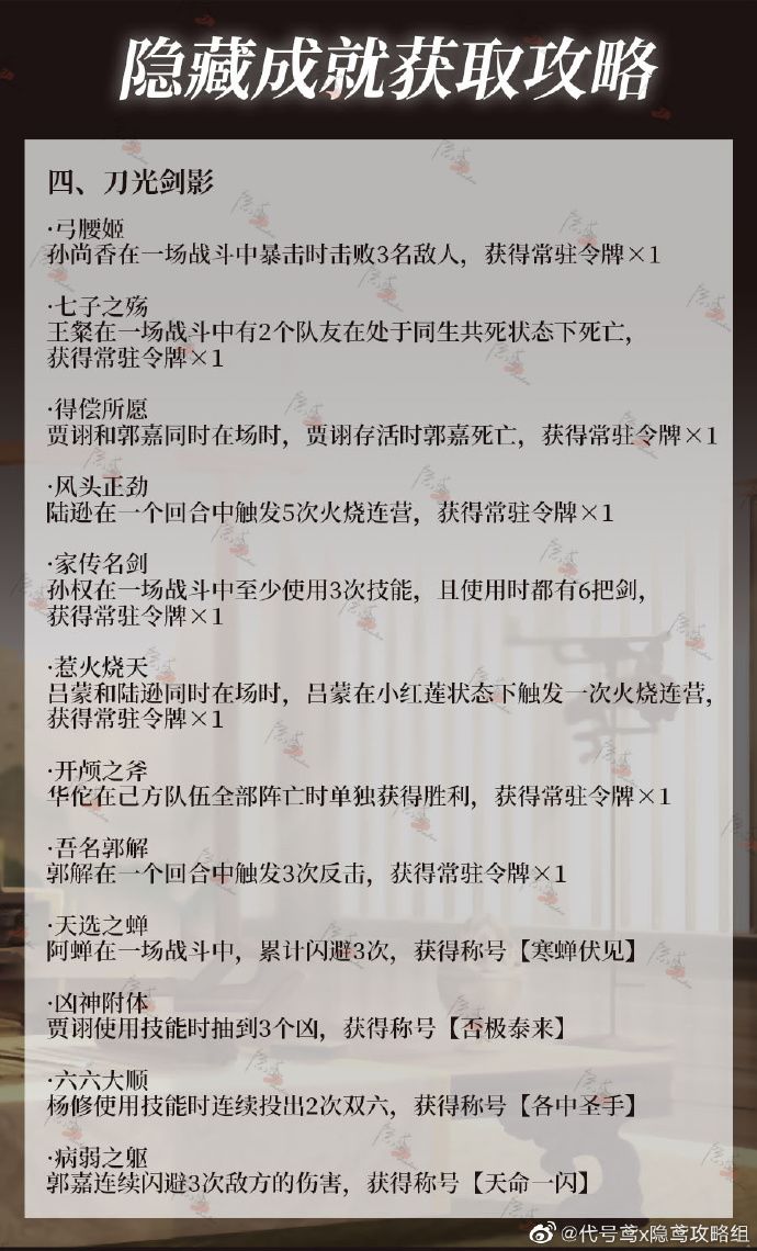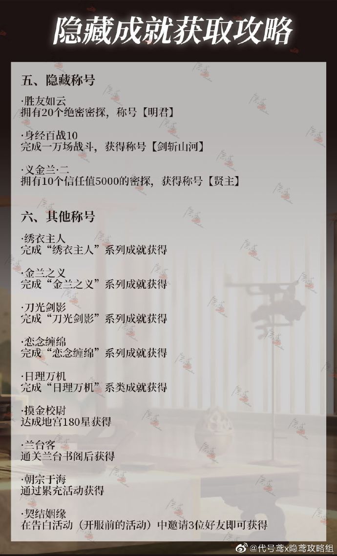【代号鸢隐藏成就、称号攻略】
