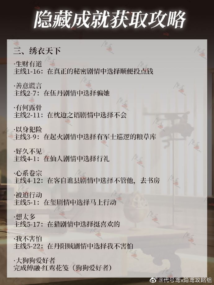 此功略搬运于微博:代号鸢x隐鸢攻略组,感谢大神分享!!