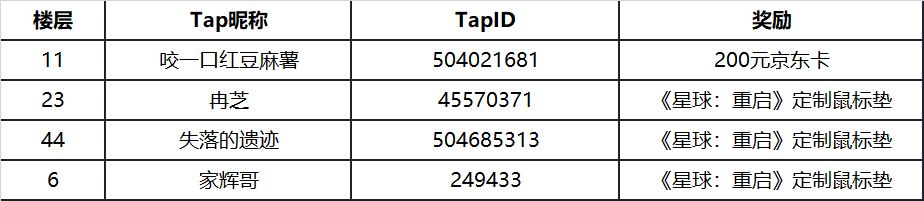 幸运参与奖(3名):《星球:重启》定制鼠标垫。由官方从所有参与者中抽取。