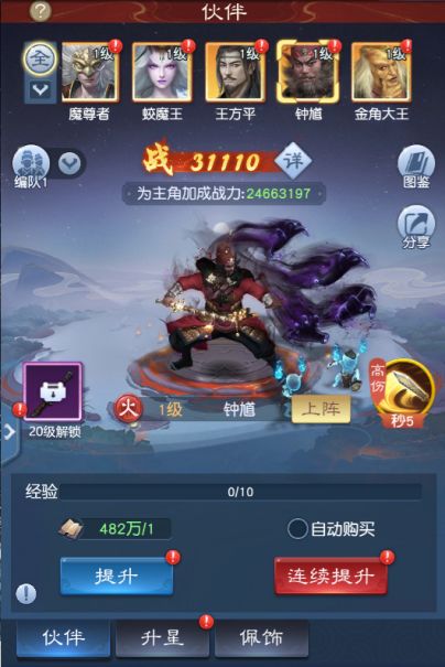 作为30个橙色伙伴之一,钟馗的基础战斗力虽然不是最高的,但绝对排的进前三!如果少侠运气好被几率到了钟馗,那么前期的成长阶段会很顺,因为钟馗足够强!