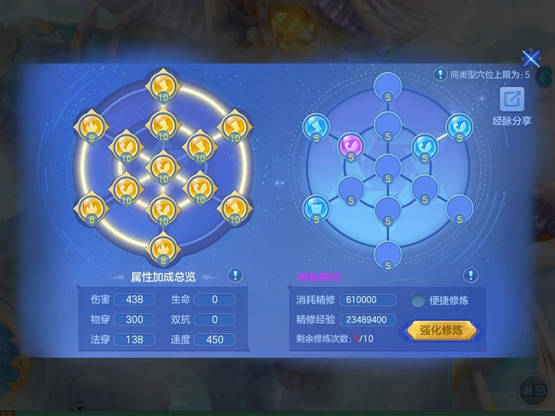 所有人物技能达到115级并完成对应任务后可使用经脉修炼秘籍解锁最后一个经脉。