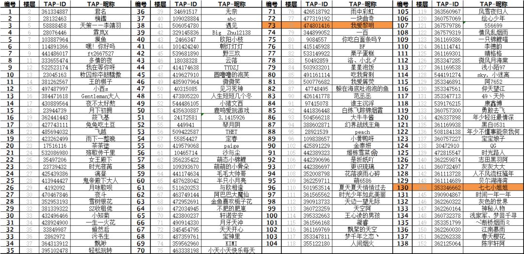 (抽奖采用随机数生成,根据首次回复顺序进行编号)