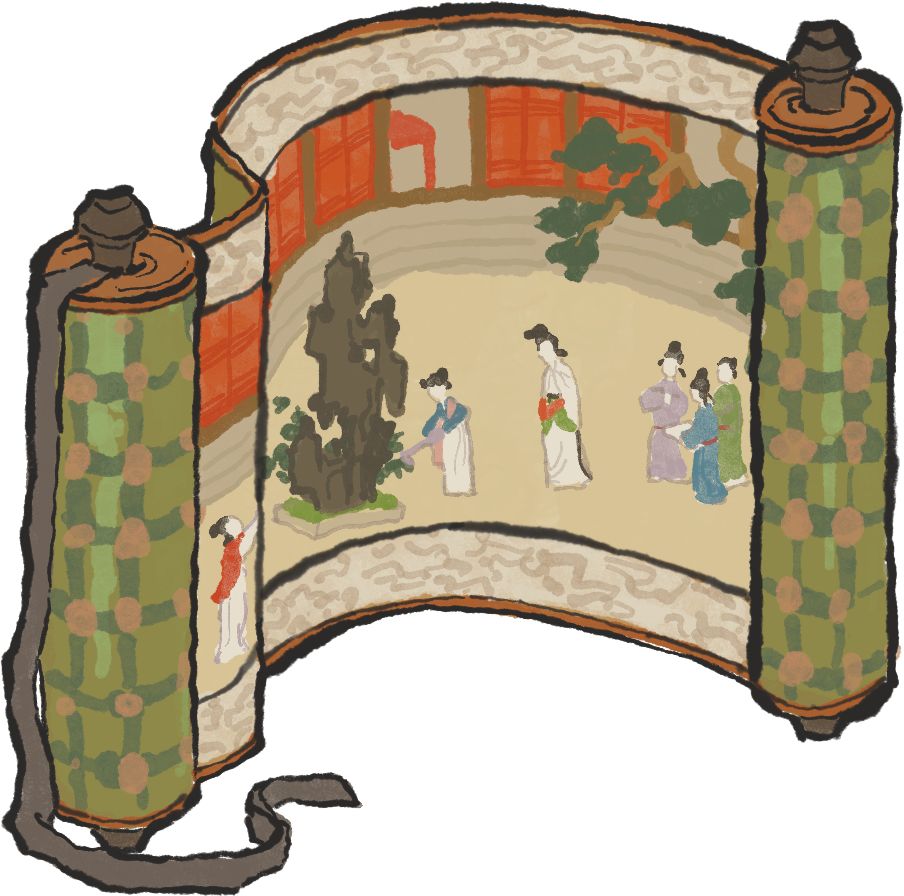 图中不仅生动形象地绘制了汉代仕女群像,还融入当时各种人文风情:歌舞、弹唱、下棋、妆扮、插花、读书、观画、挥扇等等。