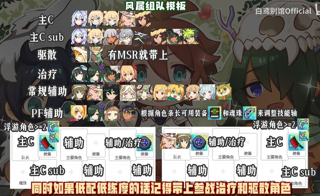 根据自己的box更换角色,有lcw的情况下可以风药师换成lcw其他角色替换基本不变(注意msr基本上不与风牛仔共同上场,驱散会过多)