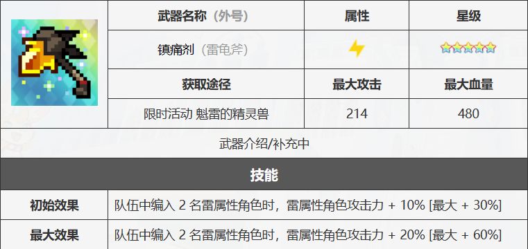 虽然生效的门槛稍低了一些,但是数值就给得过于保守了,未来的队伍里基本都没有它的格子,新手又会因为雷属性高昂的造价导致难以组出纯色雷保持最高效果,属于过渡都没得用的玩具了。
