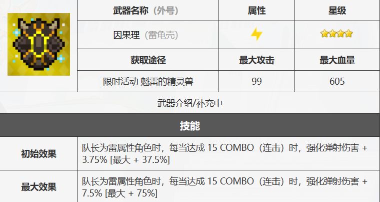 目前雷属性除了雷拳的雷至尊(老东西早就爆金币了)之外可能就只有电锯妹的栓狗PF是雷属性队长了,但是暖机次数要求多同时数值并不高,只能说手操雷PF的新手玩家可以用用了