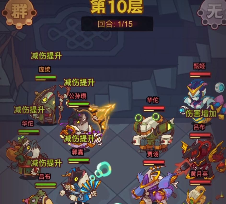 1号位置给到我们的公孙瓒这个武将,公孙瓒这个武将在这套阵容里面就是一个献祭的武将的,他阵亡之后会提供减伤和伤害的,而且提升也提升得非常多的,会给我方全体增加百分之12的伤害和减伤。而且和华佗两个可以给吕布凑齐一个三群雄的buff。