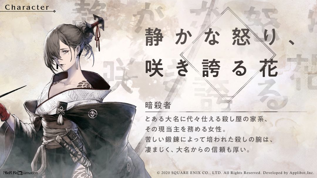 尼尔系列手游新作《尼尔:Re[in]carnation》陆续公布了游戏中人物的介绍。本作是由 Applibot 开发、CyDesignation 负责角色设计、Square Enix 发行的RPG,预计登陆 iOS/Android 平台,此前开启了限量内测(试玩介绍)。