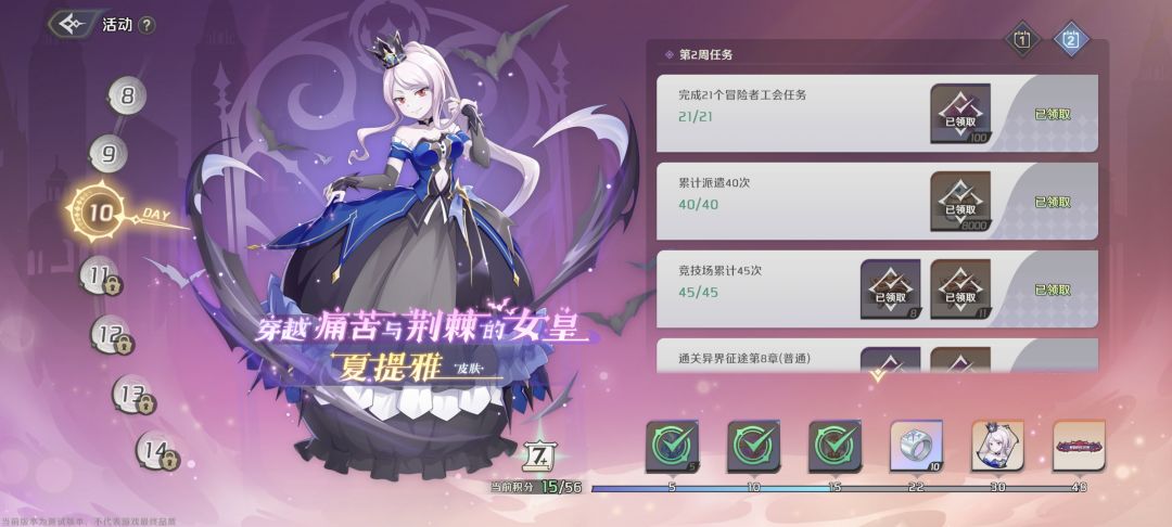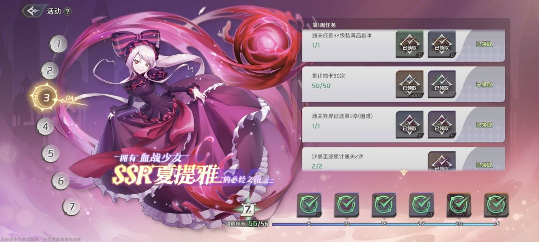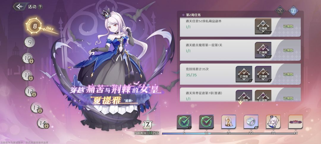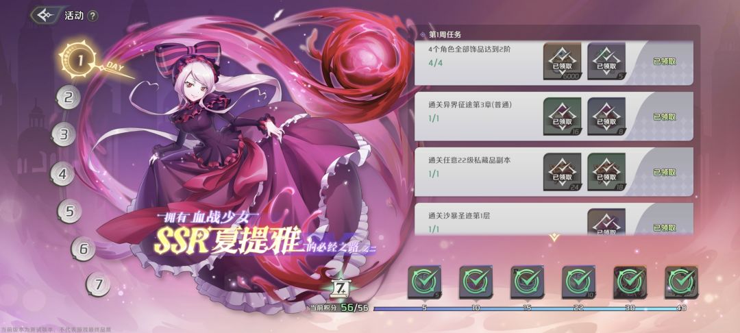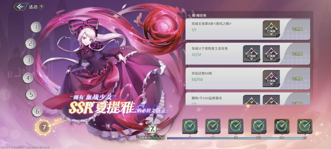 第七天没啥的解锁的了,应该本次测试内容就这样了,明天准备出新卡池,100级删档前应该到不了