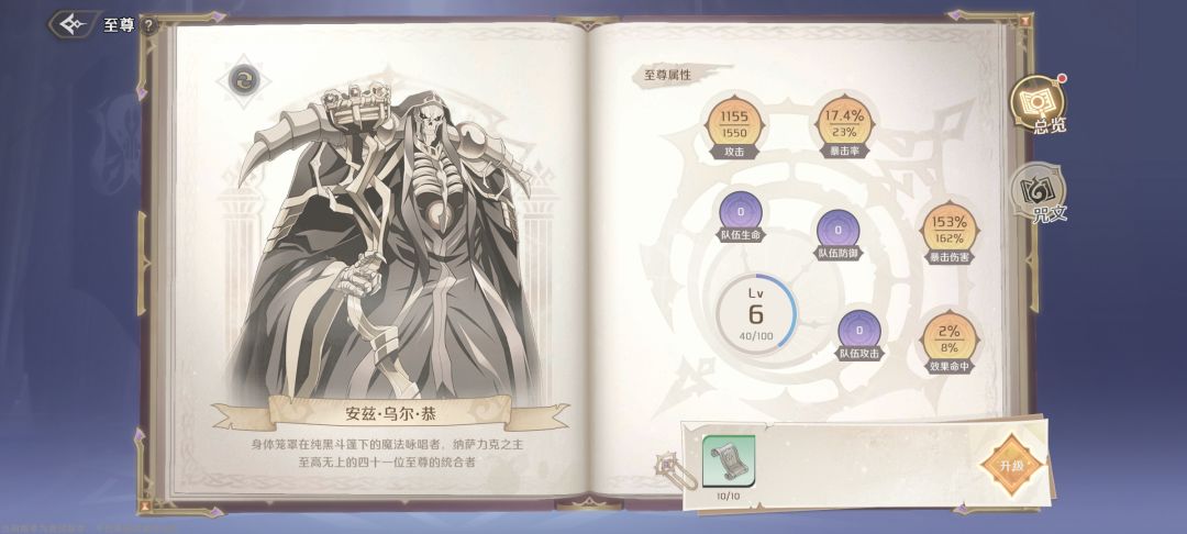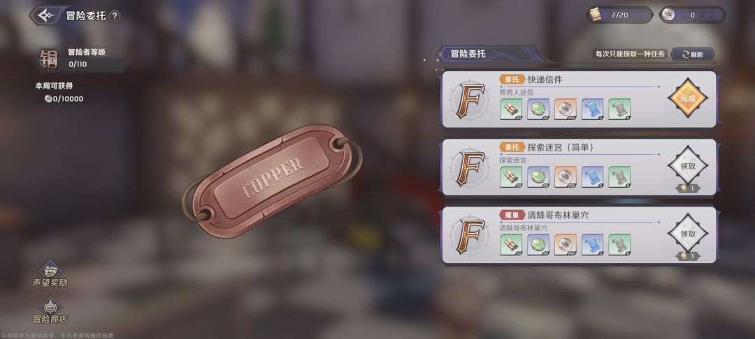 今天第三天,看到冒险家公会的委托了,就离谱,交任务还得回冒险者公会交,委托的商店里有升级和解锁至尊(一共两个,安兹·乌尔·恭和塔其·米,塔其·米玩家等级100级才解锁)的技能的材料。选择清楚哥布林巢穴后会解锁个限时一个小时的副本,能刷升至尊技能的材料,20体力一次。