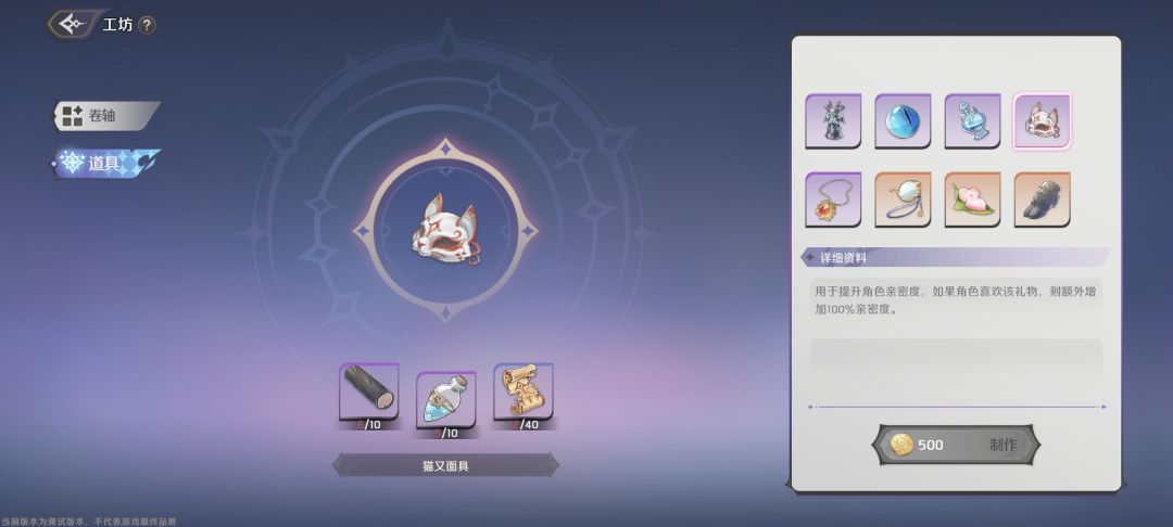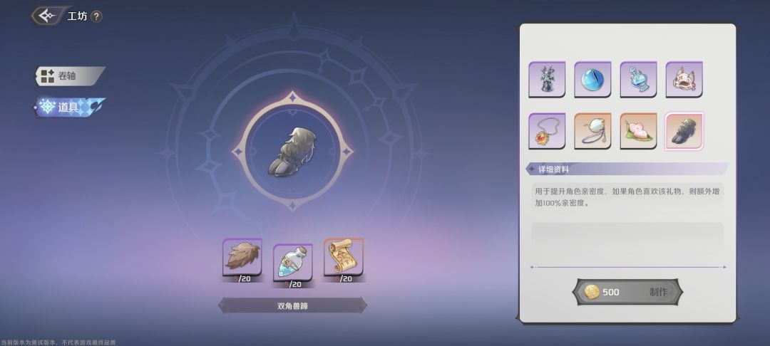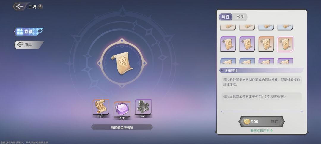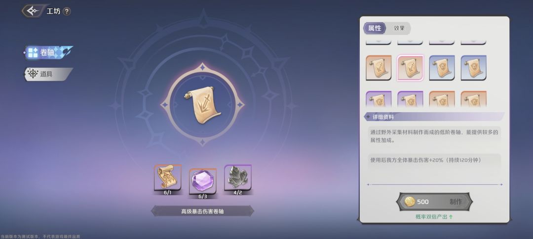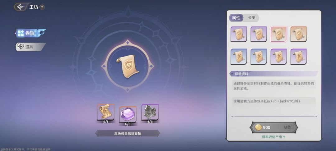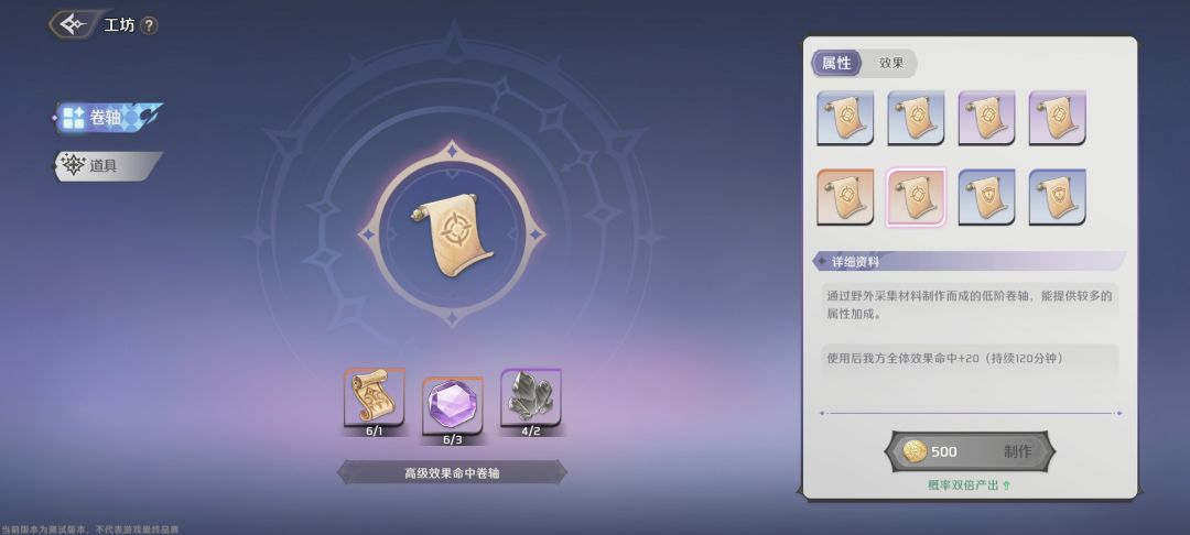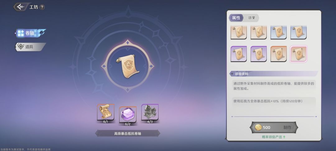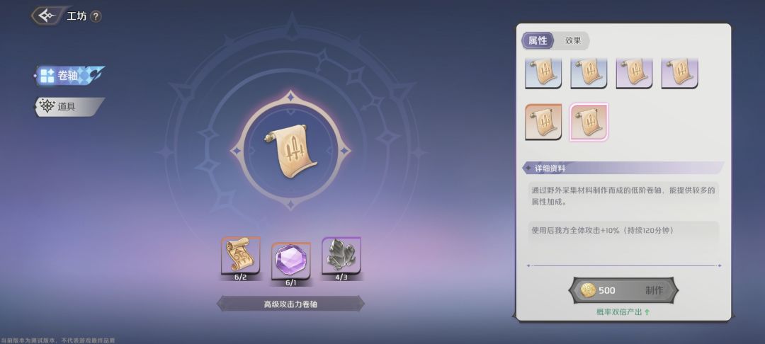 能制作卷轴和好感度礼物了,卷轴战斗时可以携带两个,工坊等级越高,能制作的卷轴就越高级