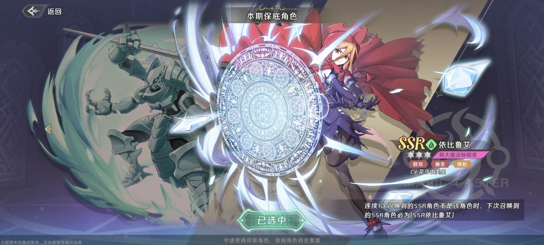 二测SSR概率公布为1.2%,80抽保底,160抽大保底。