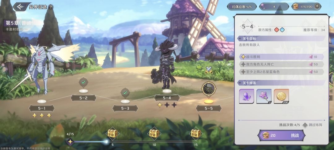 有些关卡三星条件与属性有关,有的要求队伍里有至少两位红色/蓝色/绿色角色。