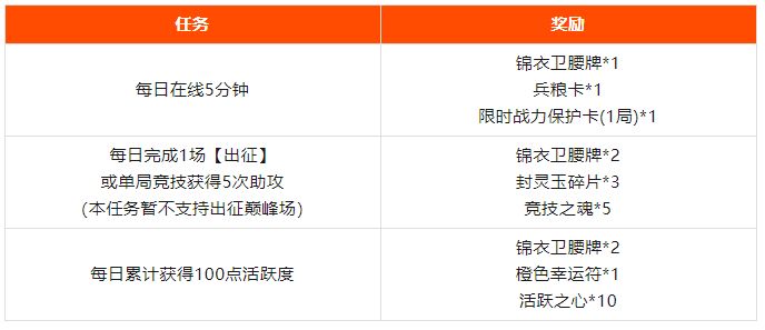 活动期间完成下列任务即可领取相关奖励~