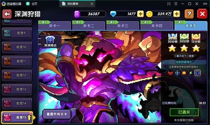 3、通关记录大小秘境版本,2021年8月1日全三星通关小秘境240关,2023年3月5日深渊狩猎通关15难度