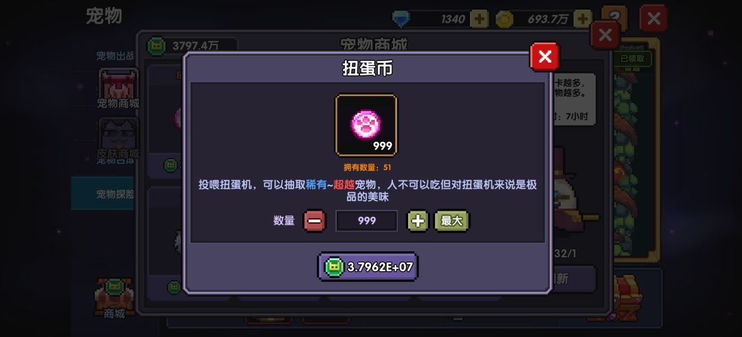 二、宠物币999上限一次性购买(想必能一直忍住囤着不买的人很少)