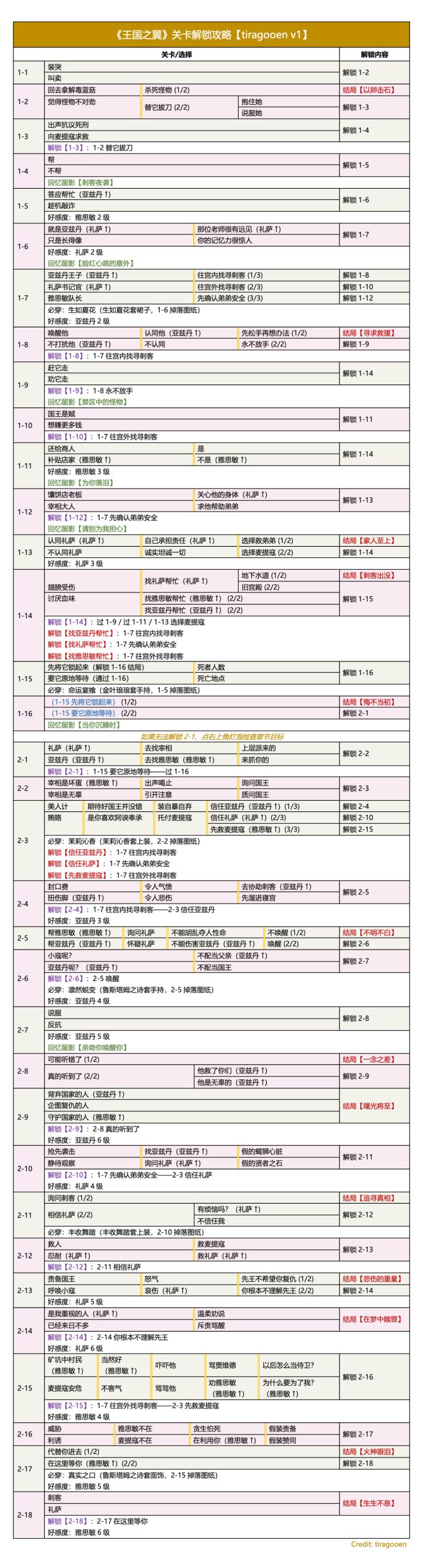 🍀《王国之翼》关卡解锁攻略【tiragooen版】 / 必做 / 留影