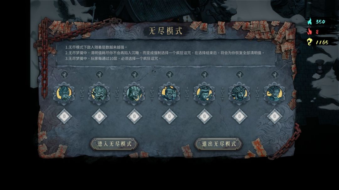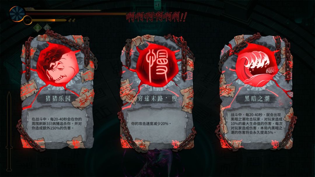 2. 玩家依旧拥有清明值,但清明值耗尽后不再陷入沉睡,而是需要在三个随机的疯狂诅咒中任选其一。
