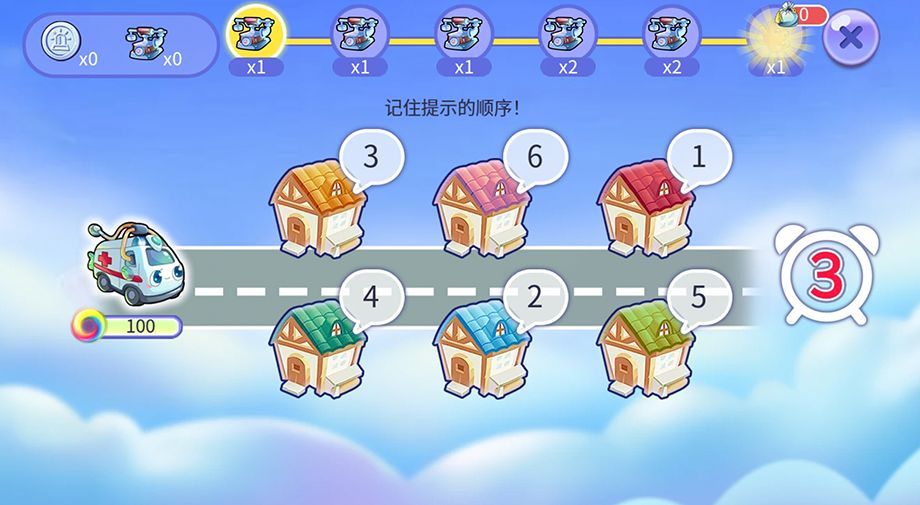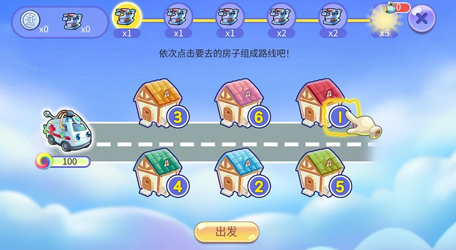 在有限时间内,我们需要记住房子的编号,并根据编号顺序将房子选中进行排列,组成救护车的行进路线。