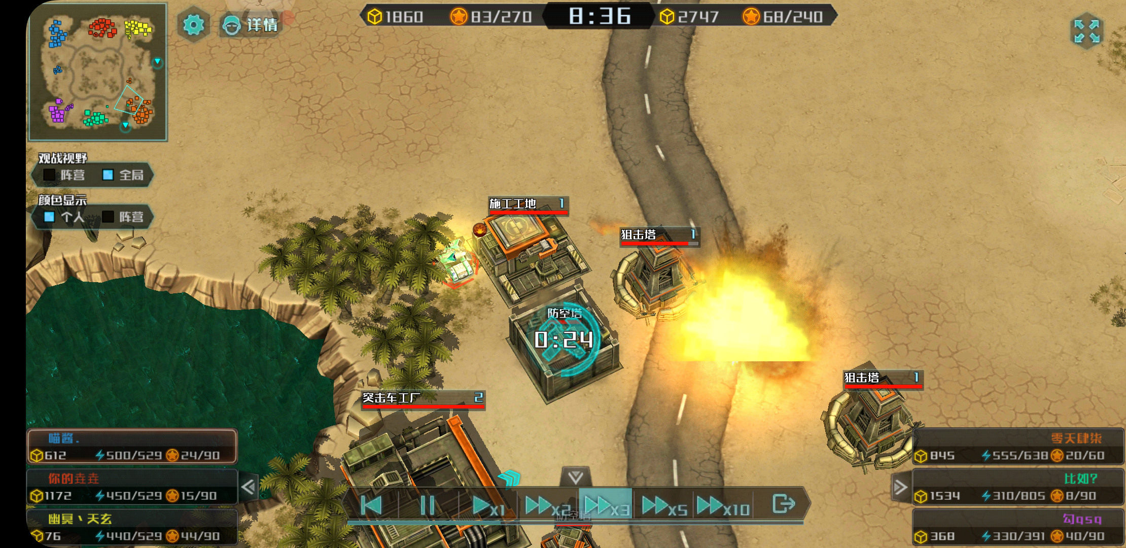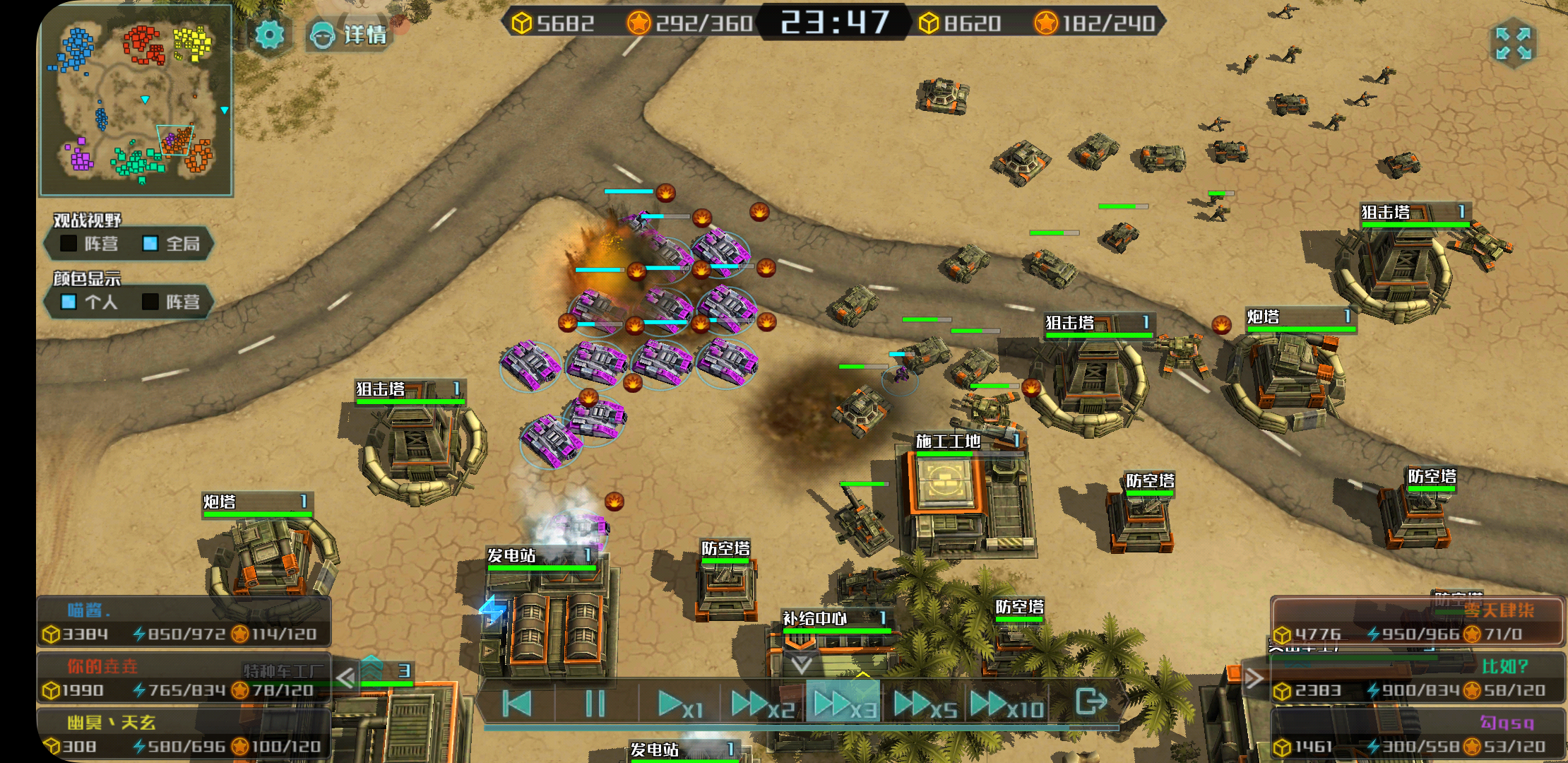 无意间匹配到俩小学生(别问我为什么知道是小学生,如果硬要问的话,就是对方开语音了),因为我去抢箱子不给紫方,结果浅蓝方就研究急流把我家炮塔强拆了(这里才明白他们是组队的)。