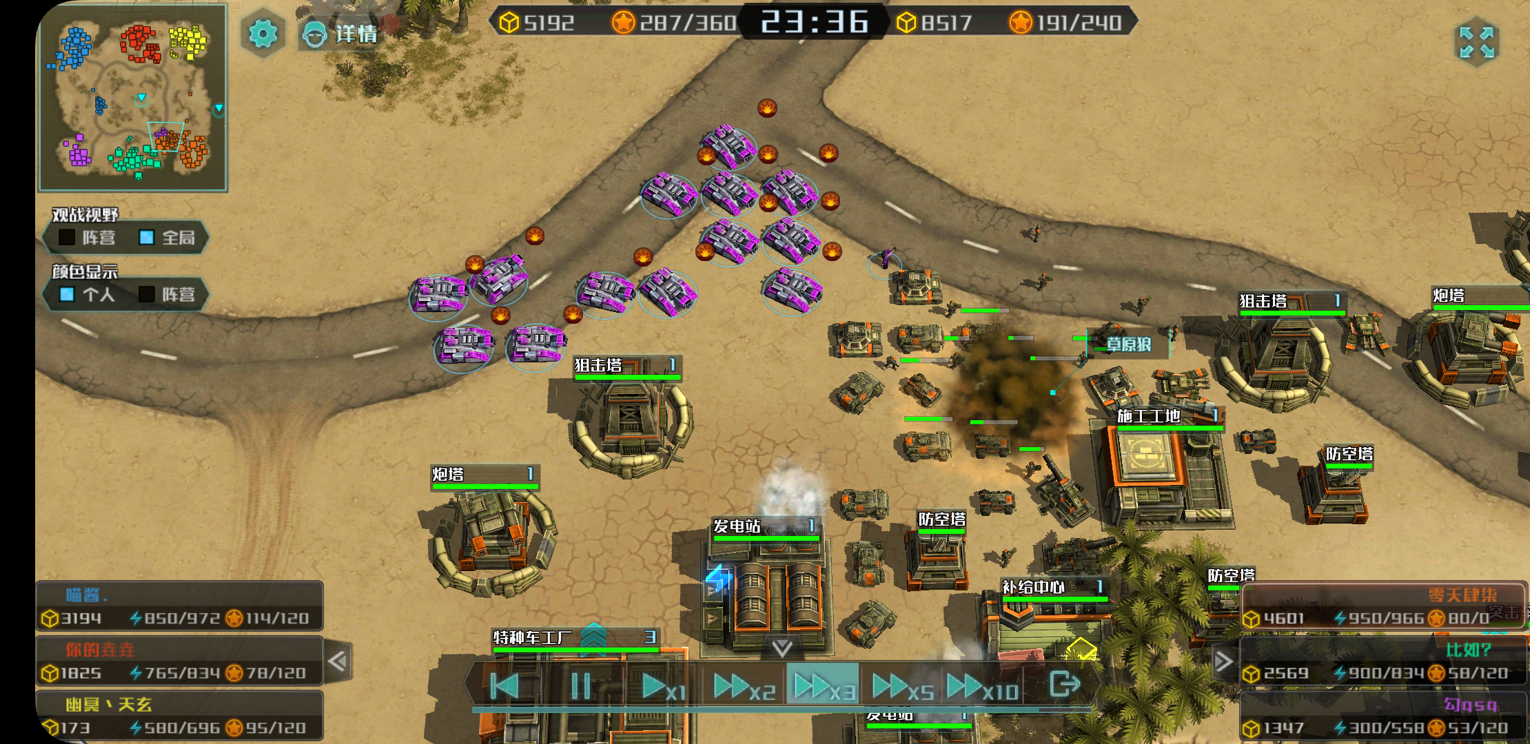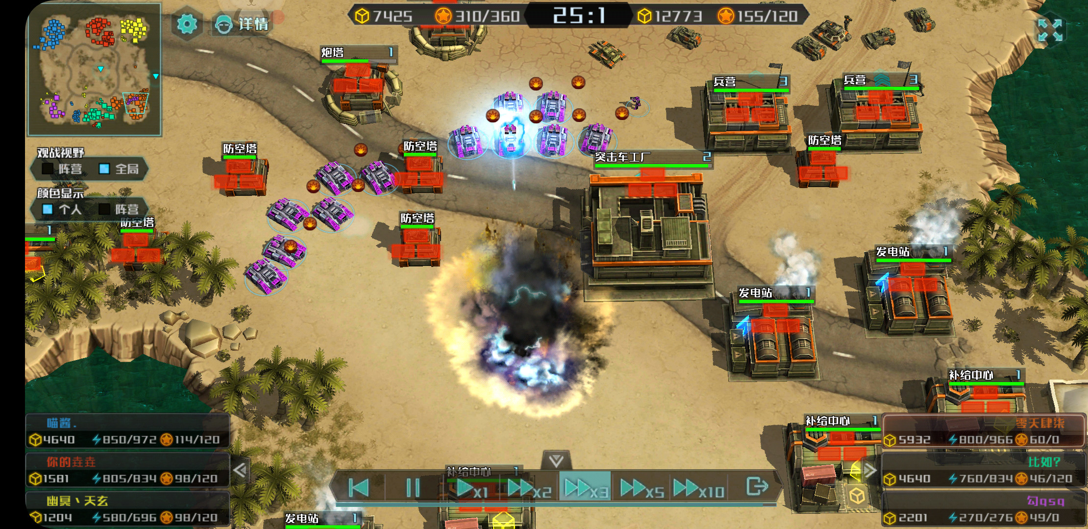 再后来,因为紫方在战斗中损失大半兵力,但我又自身难保(主基地被扬了,对面搞的是飞机流),没去支援,结果紫方反过来把我给揍了。