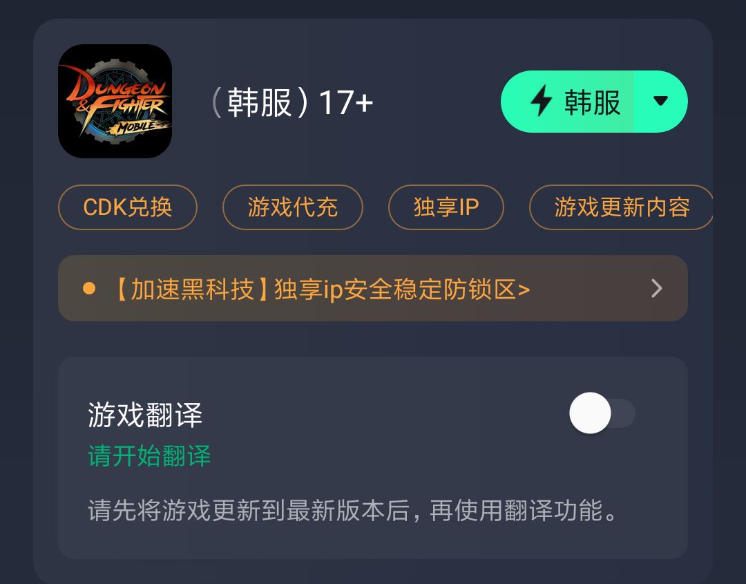 加速【韩服】区服,进入游戏可体验游戏翻译。