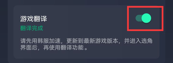 在加速列表中开启【游戏翻译】开关,等待进度加载完毕,界面显示“翻译完成”