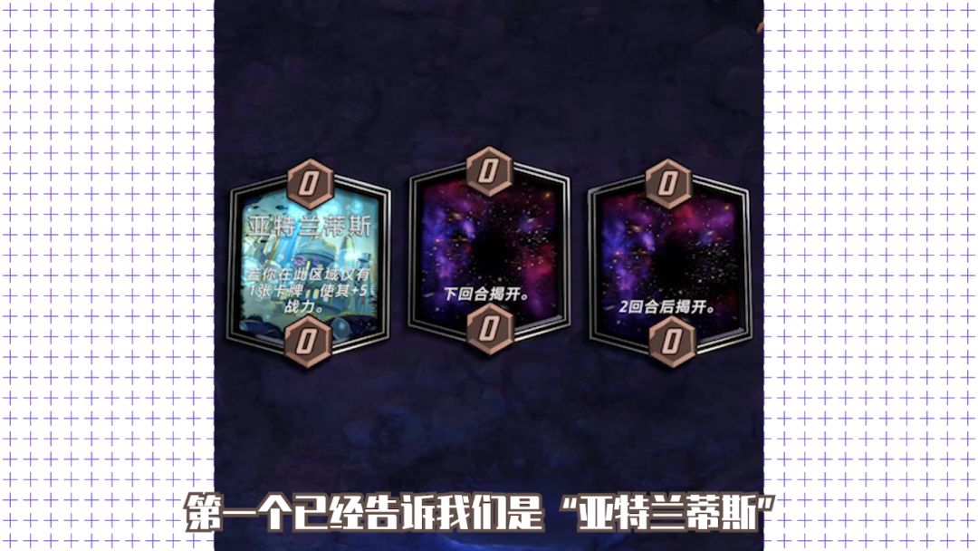 好的!来到激动人心的战斗部分,可以看到中间有3个神秘区域,第一个已经告诉我们是“亚特兰蒂斯”,另外两个会在后面的回合显示出来,玩家获胜的条件,就是把我们手牌上的卡放在这些区域中,英雄卡牌的右上角代表的是战斗力,战斗力之和大于对手,那么我们就赢了,但是,你可以看到场上有3个区域,所以游戏规定玩家要赢下2个区域才算最后的胜利。
