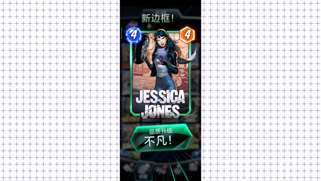 来到我的卡组,可以看到我已经收集了很多漂亮的卡片,而且对于漫威迷来说,相信这里会有你喜欢的英雄。这些漂亮的卡片特别的地方,你可以加工它们,让它们变得不凡,就像是这张美杜莎,它有非常漂亮的全息视角,那么在战斗开始前,我想先加工一下这张“杰西卡-琼斯”,还获得了一张神奇先生,效果看起来不错!