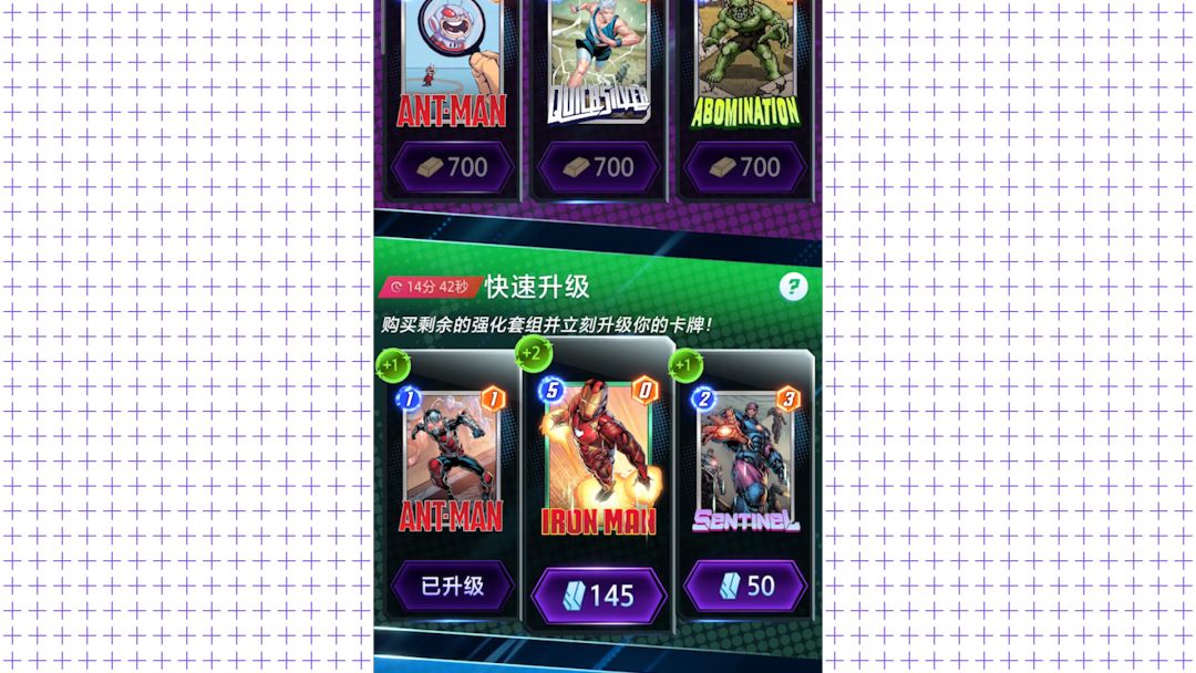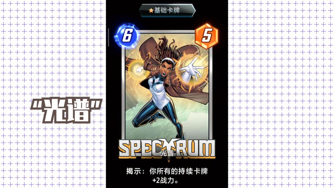 那么除开比赛,如果你想比较划算地加工卡牌,在游戏的商店页面有时候会有优惠,像是这个钢铁侠,在这里我就可以消耗更少的资源来升级,非常棒!现在有3d视觉了。这里又解锁了新的卡牌:“光谱”。