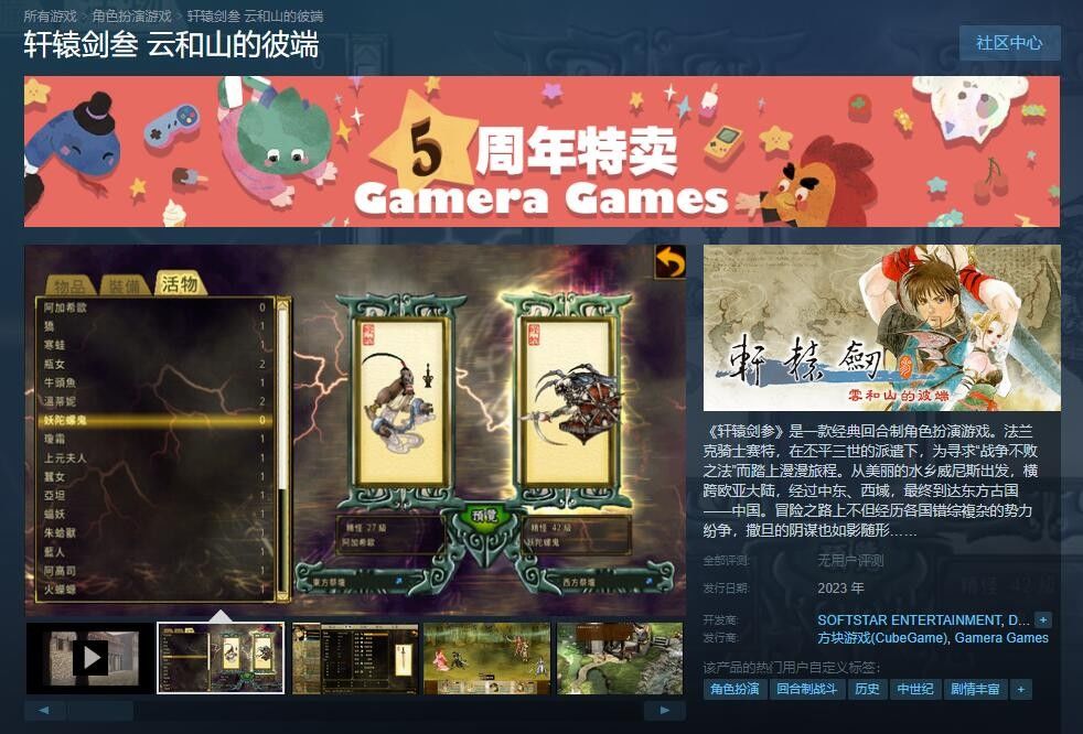 今天,经典武侠RPG《轩辕剑叁 云和山的彼端》Steam页面现已上线,预计将于今年发售,游戏支持简体中文。