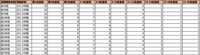 11. 奖励规则:玩家需要到达对应的排名范围后,按照等级区间来进行奖励发放,10级为一个区间,奖励按照跨服服务器中的等级发放