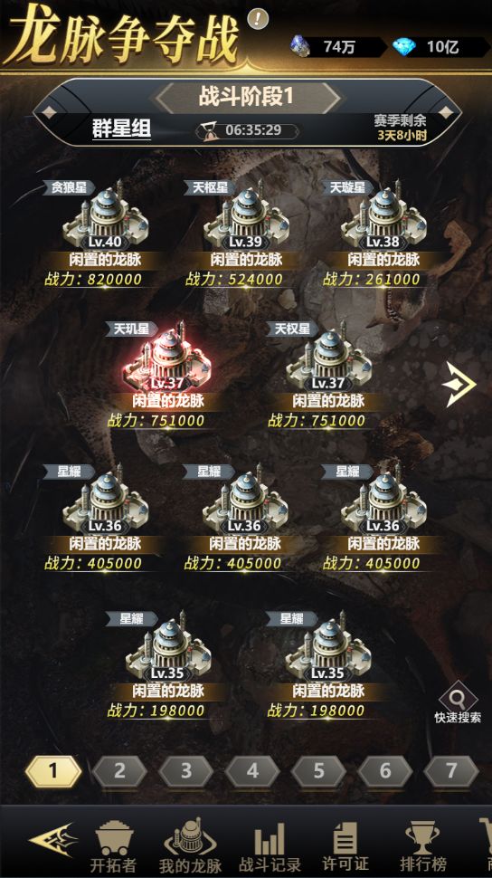1.龙脉争霸,首选群星组-天玑,积分最多,也可点击快速搜索,选择积分高的进行占领,要分配好自己占领上阵的英雄,以积分最大化来占领,有条件的话多抢夺,这样积分获取很快,积分排名越高奖励越丰厚。