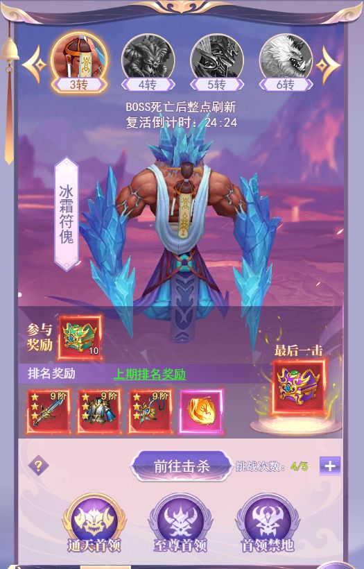 和本服首领相同的一点是,也是分为三种,分别是通天首领,至尊首领和首领禁地。