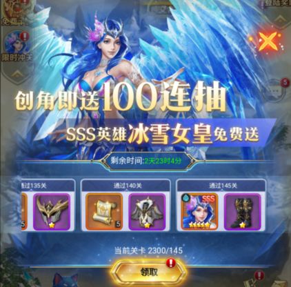 创角即送100连抽,sss英雄冰雪女皇免费送