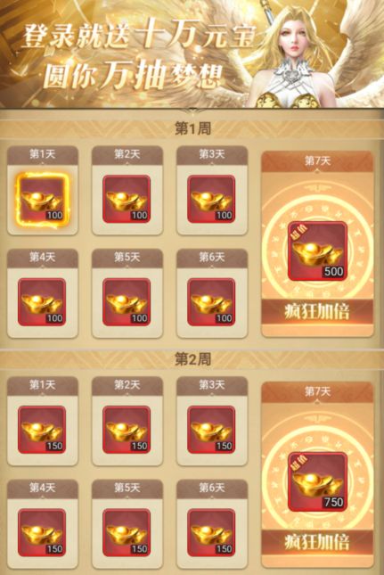 【开服狂欢五:登录送海量元宝】
