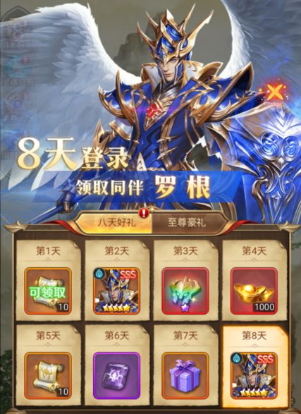 新服前8天,每日登录可领取丰厚奖励,次日即可免费领取sss水系强力同伴。