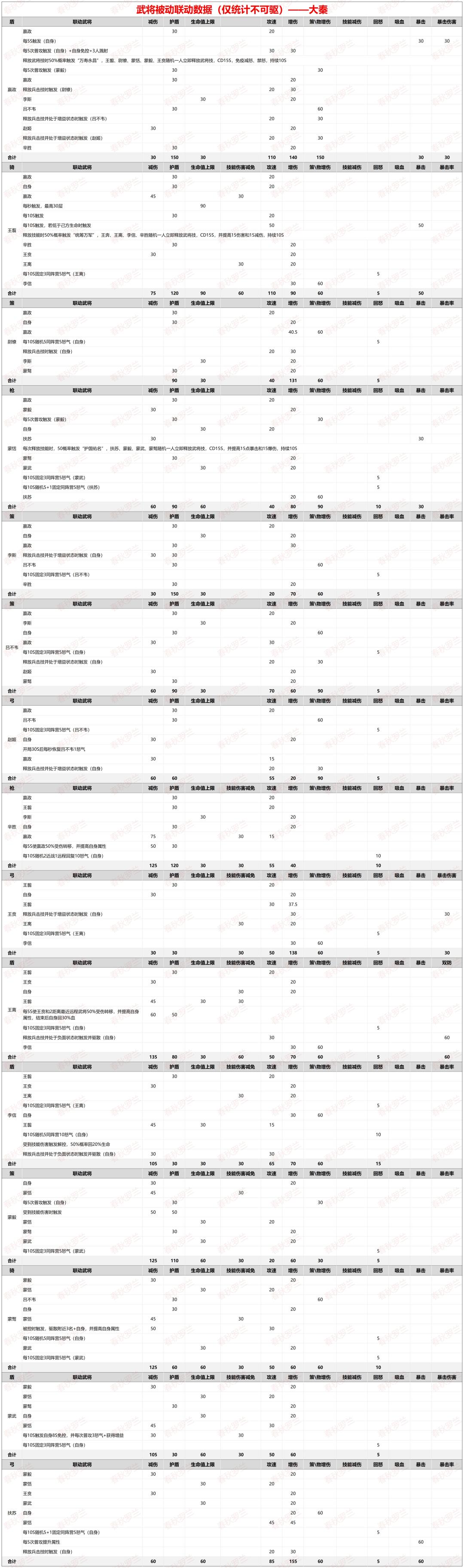 武将被动联动数据(仅统计不可驱)——大秦 2023.4.20