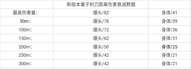 量子利刃50~100m左右虽然伤害会衰减但爆头伤害都保持在70多,身体35多。