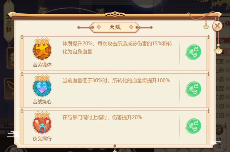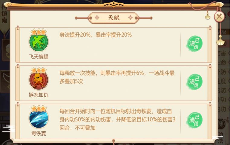部分侠客在本次更新中迎来了天赋&经脉的全面升级