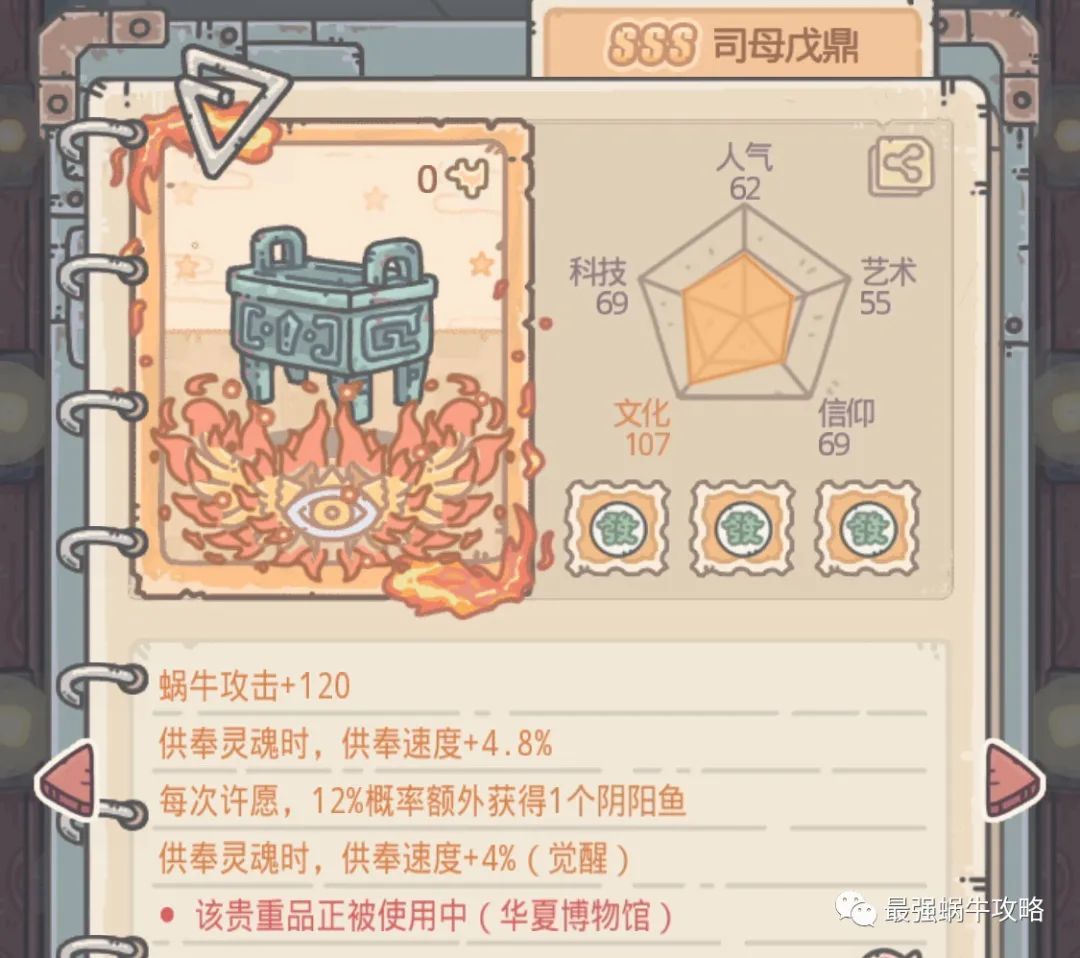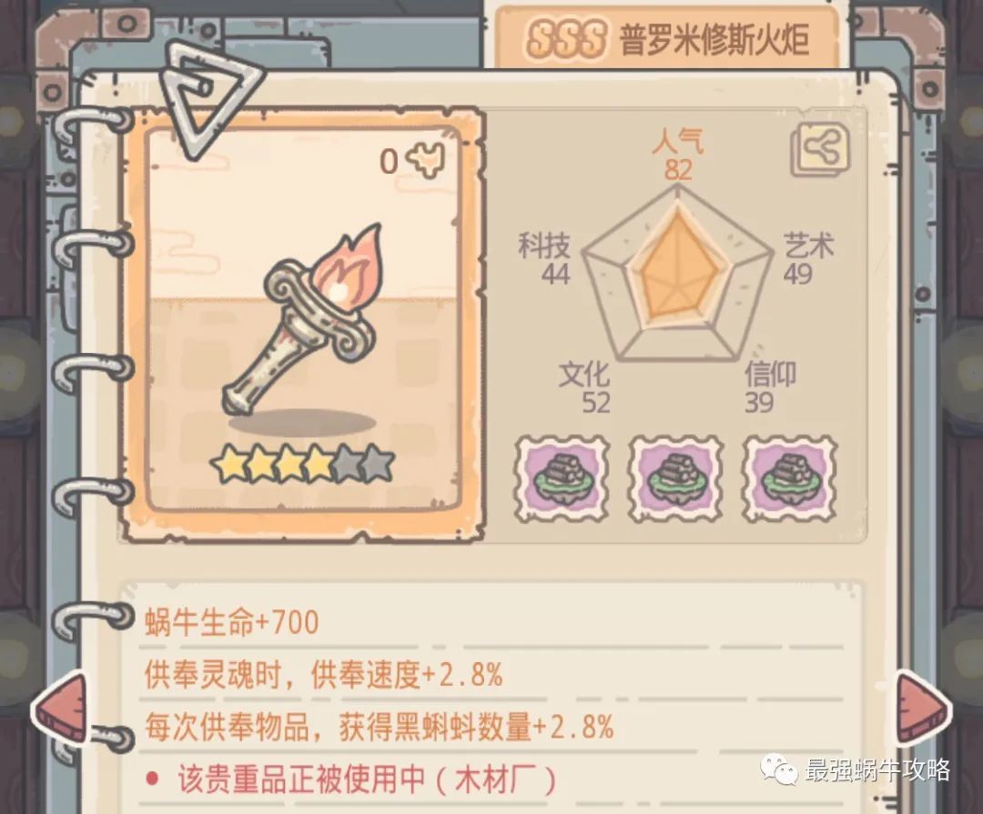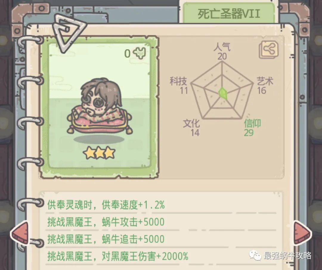 老碟曾经说过:百万吨支撑为蜗牛提供了巨额的移动速度加成,使得蜗牛的跑图效率更高了,是全阶段都能用上的优良装备,百万吨支撑的收益更兼顾随机性,毕竟谁也不知道,下一趟探索,出来的是十来颗龙珠还是七八根檀香(该醒醒了!)总的来说,百万吨支撑的性价比非常高,超级建议合成!