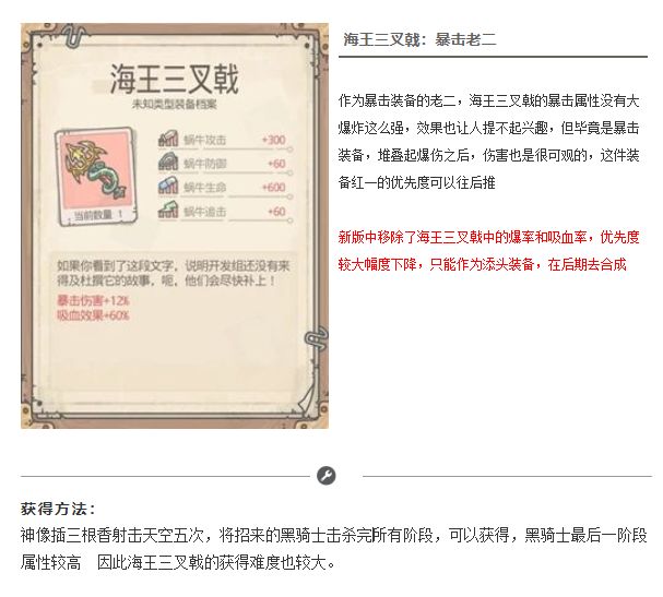 2、海兽手套:升级后如图,海德拉手套是海王三叉戟的强化素材之一