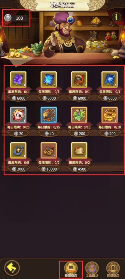 联盟成员可在联盟商店使用联盟币或钻石兑换商品;联盟商店商品每日随机刷新,联盟等级越高,每日随机出的商品价值量就越高。