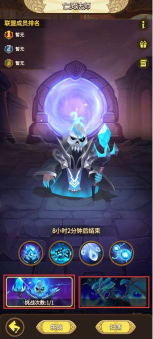 - 亡灵法师每日刷新,玩家每日可免费挑战一次(不朽荣耀等级达到一定等级后可额外获得一次亡灵法师挑战机会)