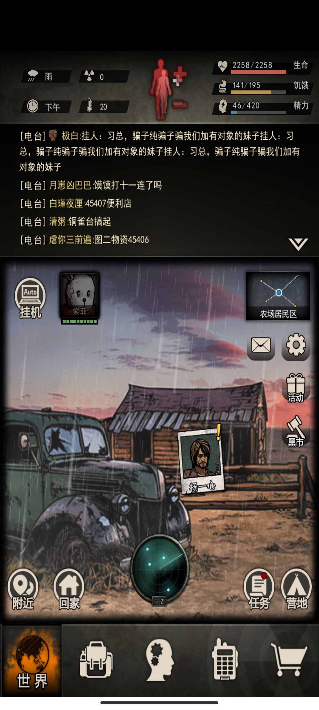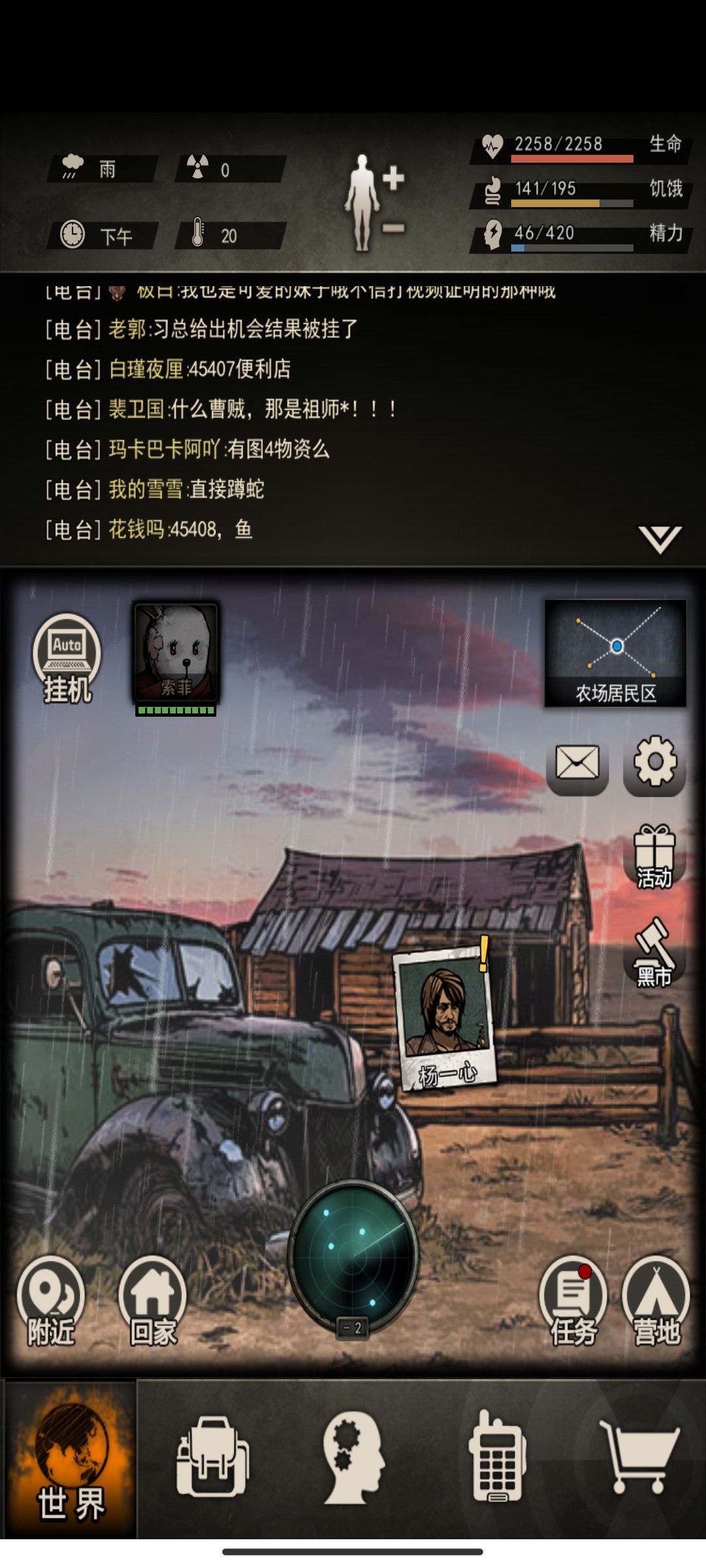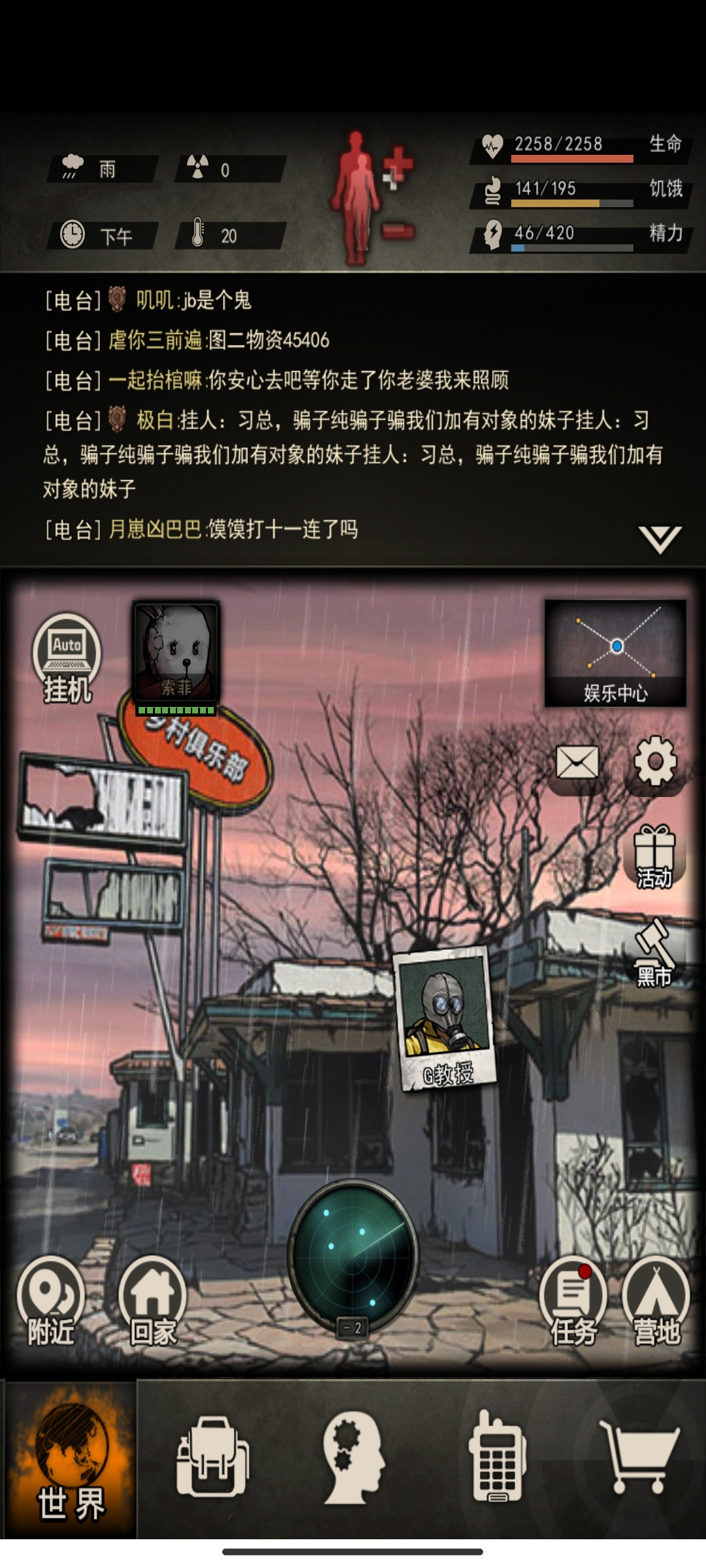 小退功能:节省精力快速回家比如组织修刀,尸潮物资回家放东西,摩托车则可以无精力快速躲怪