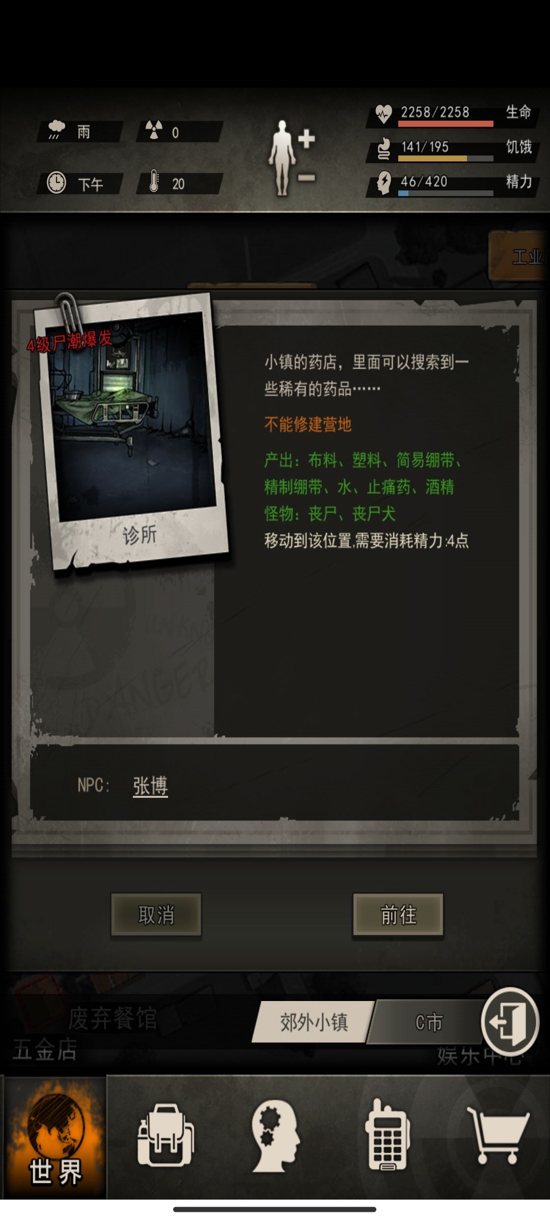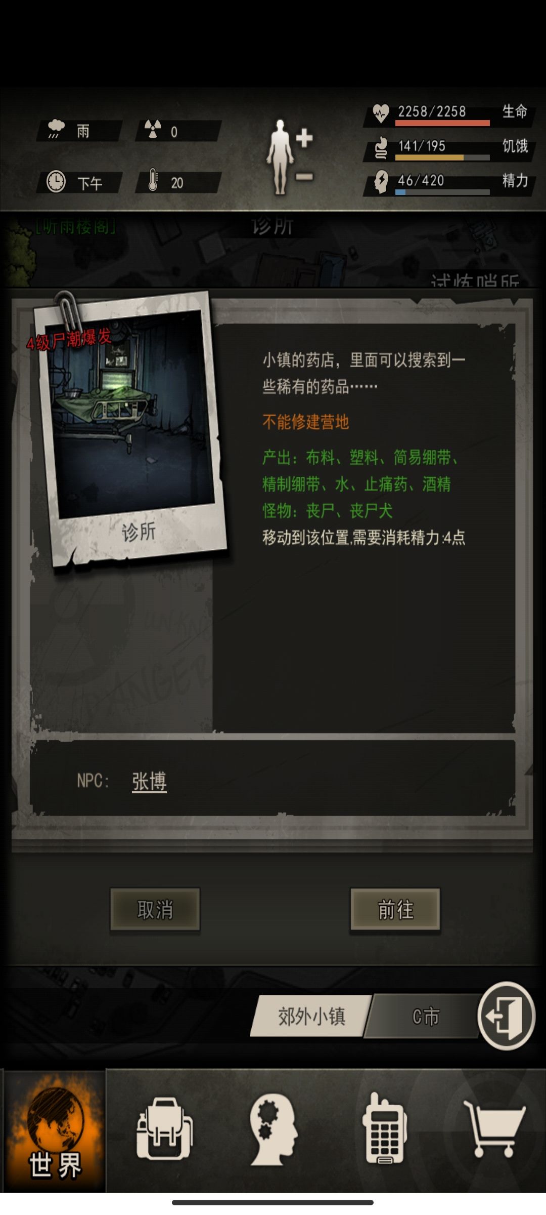 再一次点击地图你会发现到诊所只要4精力然后你就去自己想去的地方就行了