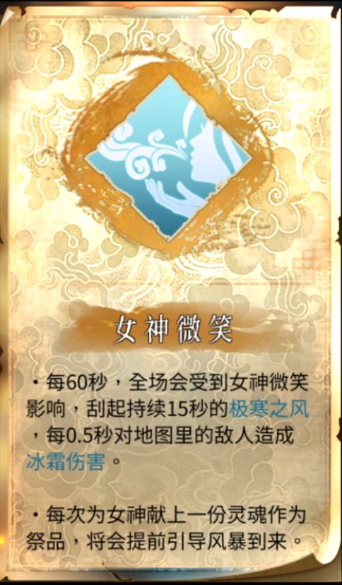 没错,白霜在烬梦中最核心的技能并不是寂灭之眼,而是女神微笑,而这个在本体中表现并不出彩的技能在烬梦dlc中却可以发挥极其强大的清怪优势,可能说到这各位还会有点懵,这里就放出女神微笑的具体效果供大家参考