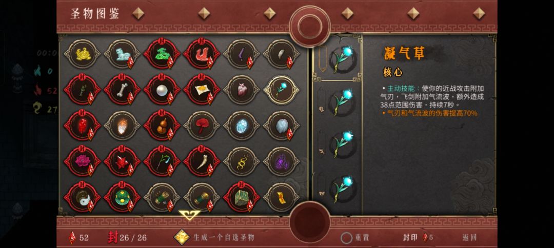 七剑本身就是靠普攻打伤害的流派,频繁的普攻自然能够频繁触发炮轮的核心效果,而机关炮轮的aoe在自身面板配置足够高的情况下可以发挥不俗的清怪效果,即使是在本体龟之章想要跳关也得依赖炮轮四的效果,可以说是七剑清怪速通的必备圣物了(笑),而凝气草一号位同样是十分强力的速通圣物,怒气爆发相当于给七剑的普攻和飞剑都附加上aoe效果,其中气刃和气流波都属于飞剑伤害,也就是说相比于机关炮轮,凝气草的优势在于更容易攒满怒气,只不过需要通过手动来触发凝气草的怒气爆发效果,至于234号位可以依照个人理解自行搭配,最好还是走面板流路线,如果给出一整套build方案篇幅可能会过于冗长,所以这里便不再过多赘述。