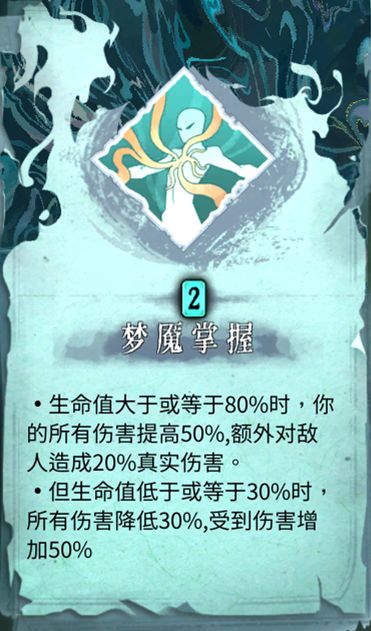 首先是梦魇掌握,这个技能可以看成高配版的不可一世或者走火入魔的平替,提高百分之五十并附加百分之二十的真伤效果十分可观,在拿了清明法印的唯我独醒后加成更是相当恐怖,比上走火的加成只强不弱,更重要的是这个技能的附带真伤是可以做到跳关的,其强度不言而喻。